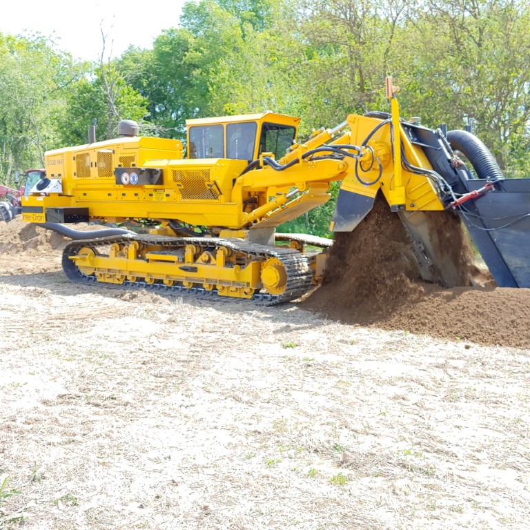 Models are available from 300 Hp to 550 Hp with tractive efforts of over 50 tons. High accurate installation speeds are possible. Inter-Drain 'plows' ensure the cheapest drainage or cable installation possible per meter. Most all models are equipped with tilt control, oscillating tracks and air-condition/heater, etc. The standard features with this machine make any Inter-drain plough an all-round machine suitable for today's contractor.